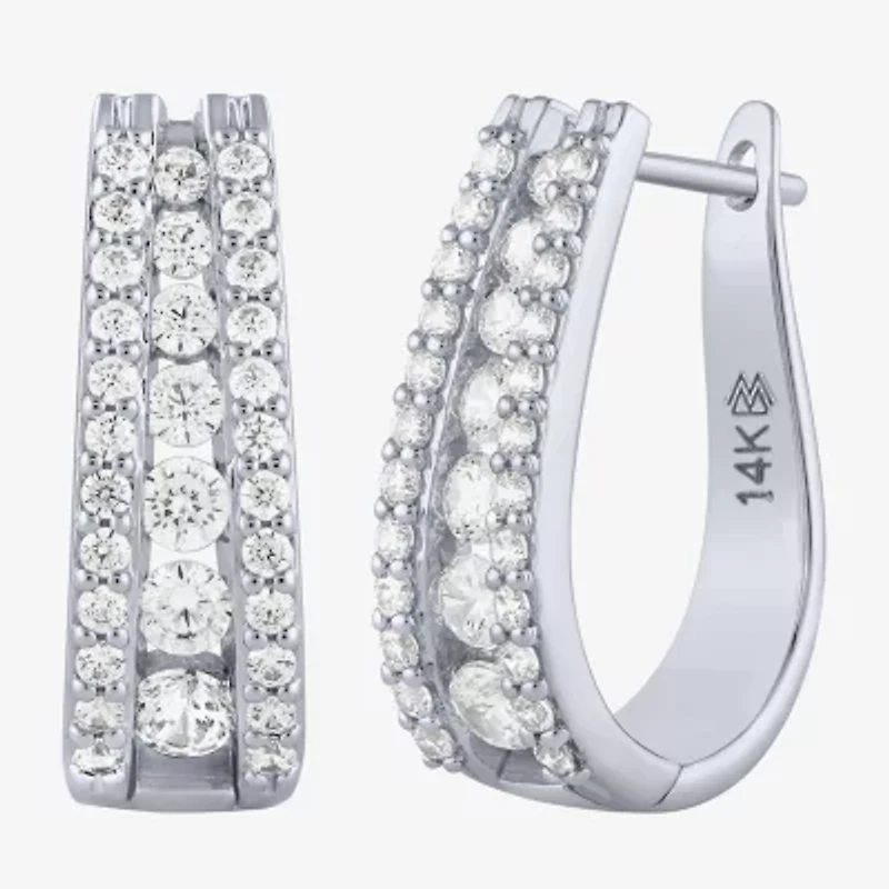 Whether for wearing with daily outfits or for special occasions, you'll love adding these women's hoop earrings to your collection thanks to their chic triple-row design adorned with round-cut Lab-Grown Diamonds. They're crafted from 14K Yellow Gold and have a 1.5 carat total weight and hinged backs.