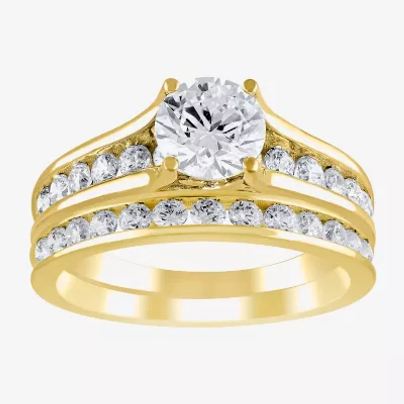 (G / Si2) Womens 2 CT. T.W. Lab Grown White Diamond 10K Gold Round Side Stone Bridal Set