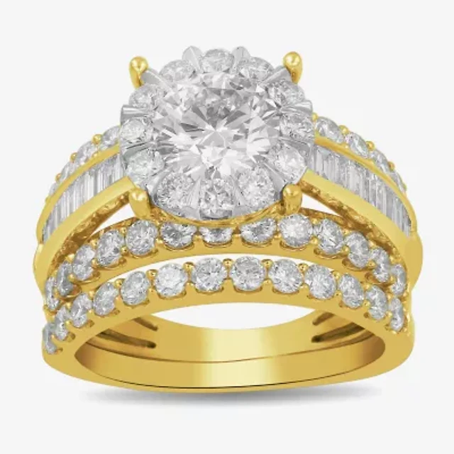 (G / Si1-Si2) Womens 3 CT. T.W. Lab Grown White Diamond 10K Gold Round Side Stone Halo Bridal Set