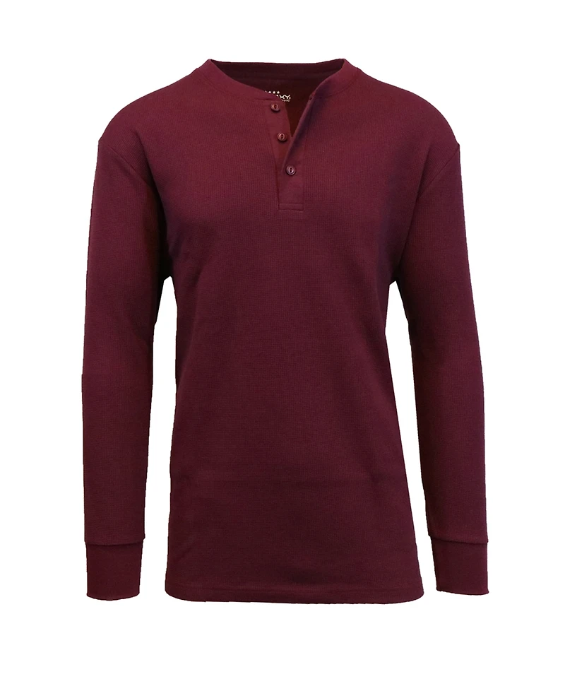 Galaxy By Harvic Men's Oversized Waffle-Knit Thermal Henley Shirt