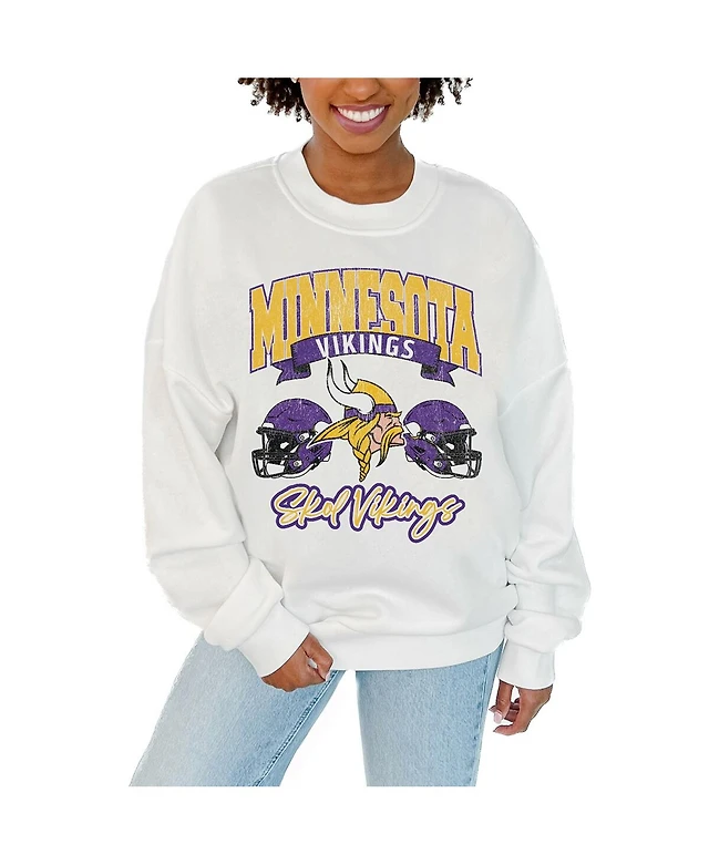 Gameday Couture Women's White Minnesota Vikings Just Go With It Oversized Long Sleeve Crewneck Sweatshirt