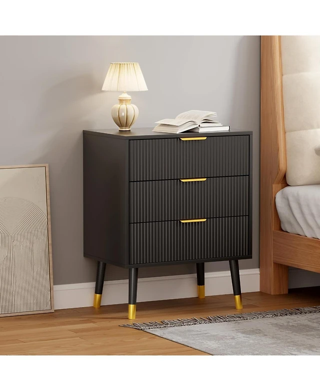 gaomon Fluted 3 Drawer Dresser for Bedroom, Modern Nightstand with Deep Drawers