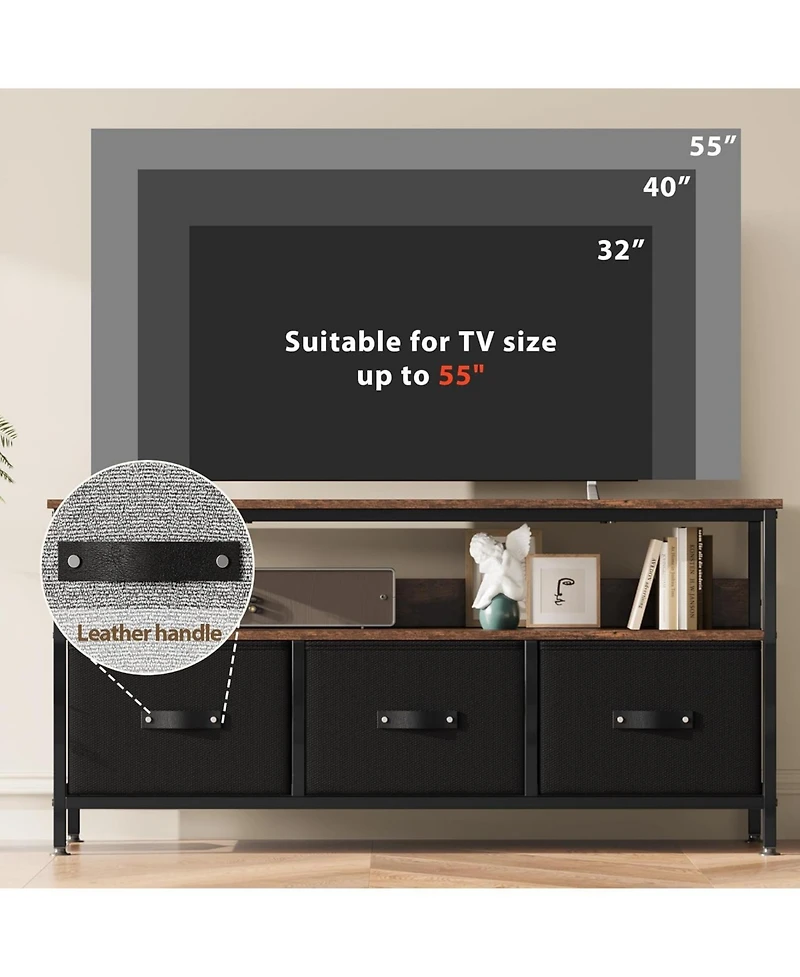 gaomon 3-Drawer Modern Tv Cabinet Lowboard with Open Shelves, Solid Steel Frame for TVs up to 55", Living Room Storage, Stylish Design in Franklin, TN