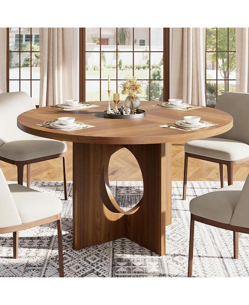 Ideal for Family Gatherings: With a 47-inch diameter, this table offers ample space for cozy family dinners for 4-6 people. Its spacious round design promotes conversation and interaction during meals, allowing you to share precious moments with friendsMinimalist Design: Featuring a minimalist design finish, this dining table adds a warm ambiance to your dining space. It seamlessly complements any decor style, and creating a style contrast with farmhouse design, infusing your dining room with modern charmSturdy Construction: This dining table features a robust frame and a Mdf tabletop, ensuring long-lasting durability. The perfect combination of materials provides exceptional stability, allowing you to enjoy the pleasure of this dinner table for long time usingMultifunctional use: This kitchen dinning room furniture serves as a conference table, study desk, office desk, craft table, coffee table. Its spacious circular design brings family members close.