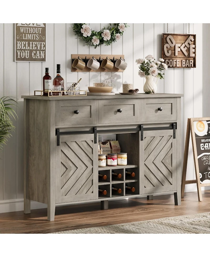 Gaomon 47.2" Farmhouse Buffet Cabinet with Sliding Barn Door, Rustic Sideboard 3 Drawers, Removable Wine Rack, Adjustable Shelf, Kitchen
