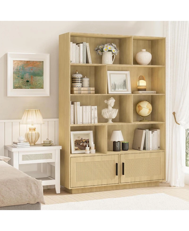 gaomon 5-Tier Boho Bookshelf – Wooden Bookcase with Rattan Doors, Tall Storage Book Stand, Large Freestanding Bookshelf for Living Room in Franklin, TN
