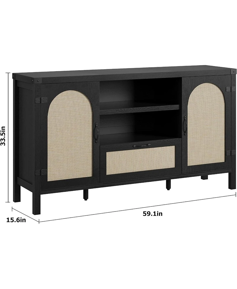 gaomon 59.1 Inch Rattan Buffet Cabinet with Doors and Drawer Adjustable Shelves