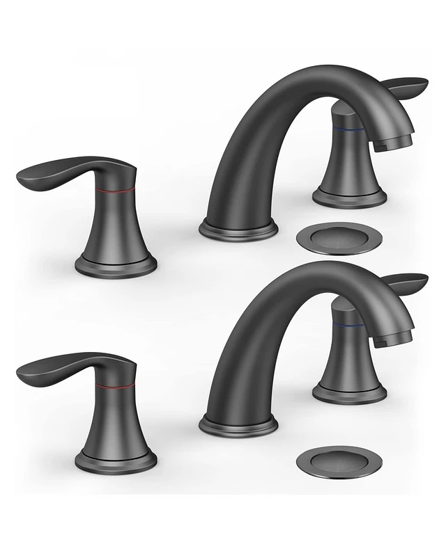 gaomon Bathroom Faucet, 8 Inch Bathroom Faucets for Sink 3 Hole, Widespread Matte Black Bathroom Faucet with Pop up Drain and cUPC Lead-Free Hose (Mat