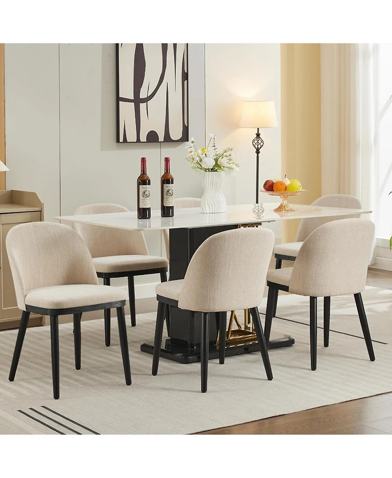 Dining Chairs Set of 6 - Modern Fabric Upholstered Kitchen Side Chairs with Curved Backrest and Wood Leg - Armless Dining Chair for Restaurant/Cafe - Beige