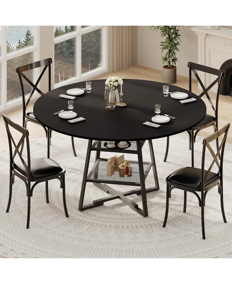 Rustic Farmhouse Charm - The wooden tabletop and cross base boast a charming contrasting black finish, infusing your dining area with a warm, inviting ambiance. It transforms everyday meals into enjoyable, cozy experiencesIDEAL For 4-6 Person Families - Measuring 42""(L) x 42""(W) x 30.3""(H), this wooden round dining table comfortably seats up to 4-6 people. Its circular shape fosters natural conversation and socializing, making mealtimes more engaging for the whole famDINING Table With Storage Shelf - Designed for both style and function, this circle dining table features a 18 inch bottom and a 22 inch storage shelf perfect for stowing dinnerware, or other items.