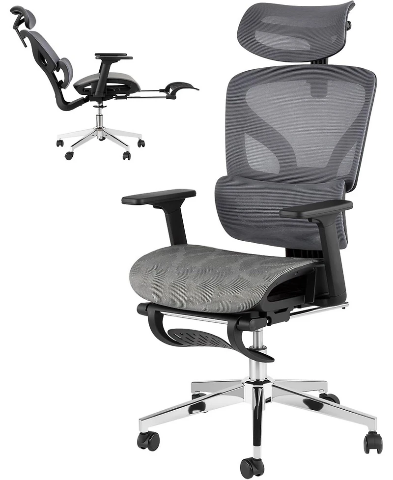 Total Ergonomic Comfort Designed to match the natural S-curve of your spine, this ergonomic mesh office chair delivers full-body support that makes long sitting sessions effortless. With an adjustable headrest, flexible lumbar support, 3D armrests, and customizable seat depth and height, you can tailor every detail to your body. The retractable footrest adds extra relaxation, perfect for working from home, studying, or late-night gaming marathons. Custom Seat Depth Everyone sits differently-this chair adapts to you. The 60mm adjustable seat depth supports your thighs and legs, helping reduce pressure and promote better blood circulation. Whether you re tall, petite, or somewhere in between, you ll enjoy balanced comfort that keeps you relaxed through long workdays, study hours, or extended gaming sessions. Adaptive Lumbar Support Experience personalized lower back