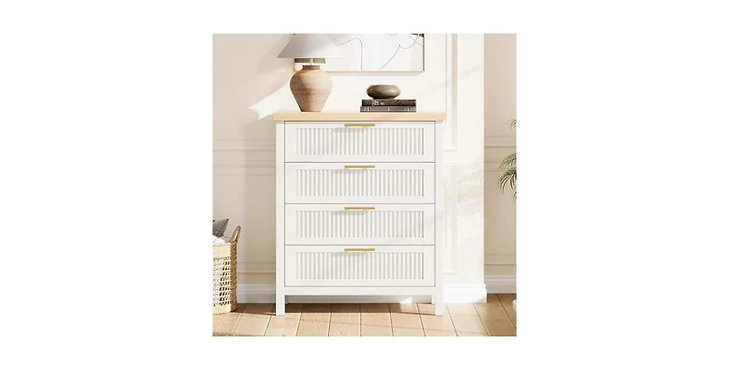Fluted Dresser for Bedroom, Chest of Dressers 35.4" Tall Dresser for Closet with 4 Fluted Dressers Chest with Clothes Storage Cabinet, Drawer Organizer for Bedroom, Living Room