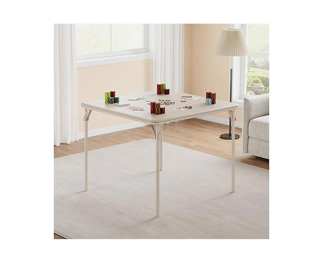 gaomon Folding Table, 33.6 Inch Folding Card Table, Portable Square Folding Table with Pu Soft Cushion, Beige Metal Foldable Table Suitable for Living