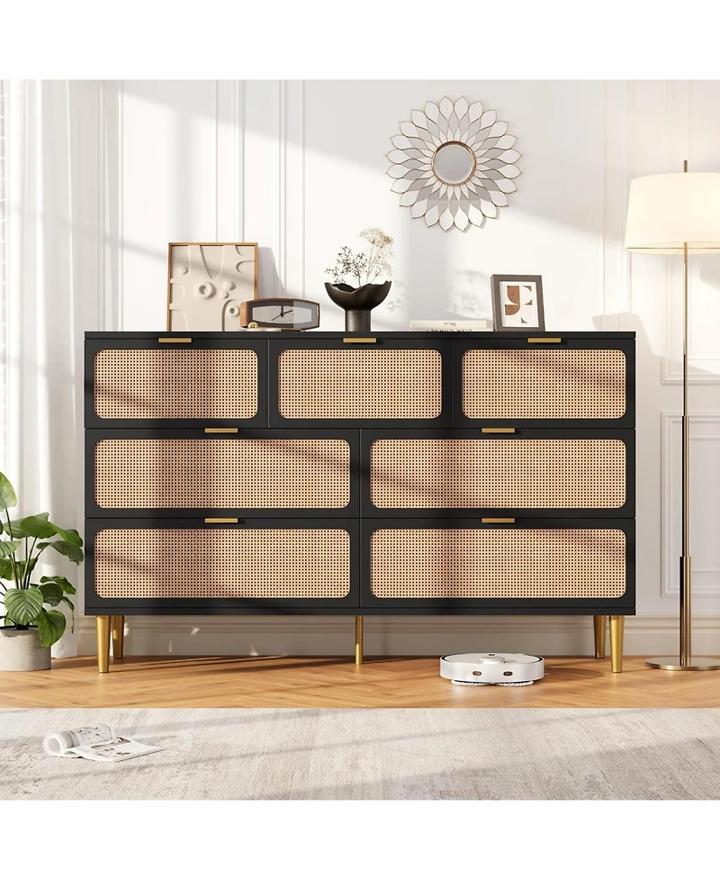 gaomon Rattan 7-Drawer Bedroom Dresser, Tall Modern Chest with Deep Drawers, Wide Top Wooden Closet Organizer for Living Room, Hallway, Kids Room in Franklin, TN