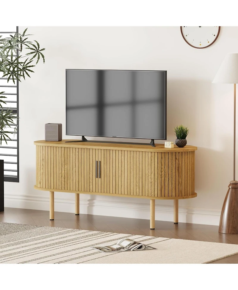 gaomon Tv Stand, Modern Tv Console Table with Storage Compartment and Sliding Door