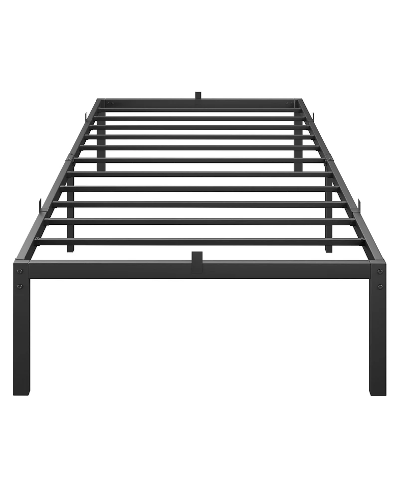 Classic 14-inch twin metal platform bed frame with heavy-duty construction. Offers noise-free and sturdy mattress support, easy build, and under-bed storage. The simple design is perfect for kids and guest rooms, with no box spring required.