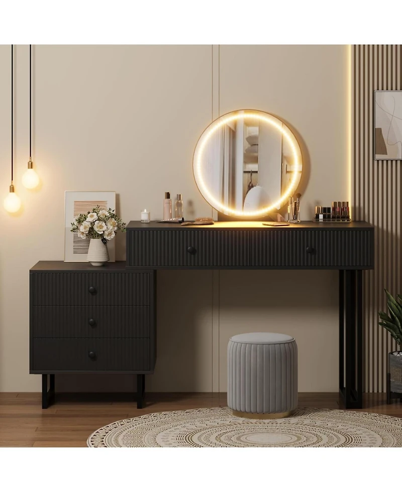 Vanity Desk with Mirror and Lights, Small Makeup Vanity with 5 Drawers for Bedroom, Modern Makeup Vanity Organizer with 3 Color Lights&Adjustable Brightness