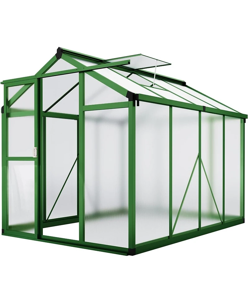 Designed with polycarbonate panels and an aluminum frame, this 6x8 ft greenhouse includes a sliding door and adjustable roof vent. The walk-in structure provides organized space for plants while supporting outdoor durability.