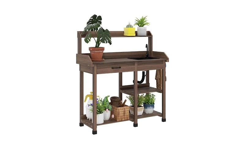 Garden Storage Work Bench with Open Shelves and Tool Space