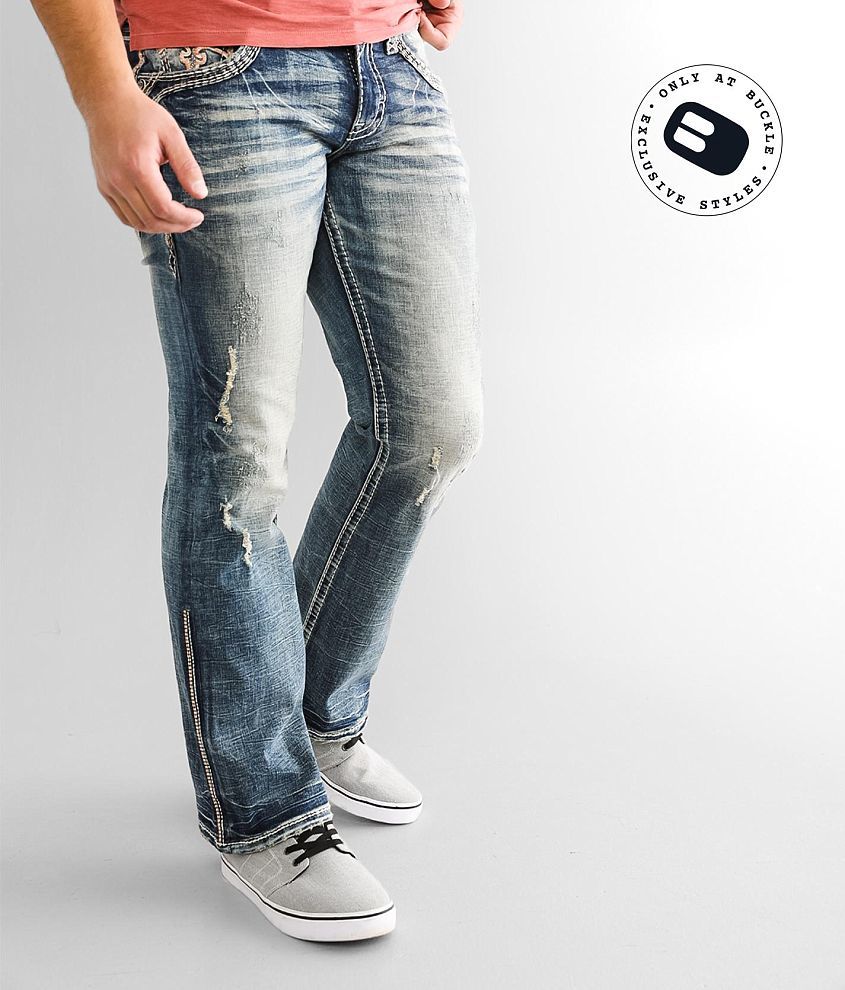 Slim fit bootcut jean Performance stretch fabric for a higher level of flexibility Low rise, 18" bottom opening Color pop stitch embroidery on faux flap back pockets Hand sanding, whiskering, grinding, dremmeling and destruction of fill yarn details Zip fly Shoe sku 959126 Model Info: Height: 6'2" | Chest: 36 1/2" | Waist: 34 1/2" | Hip: 41 1/2" | Wearing Size: 32x32