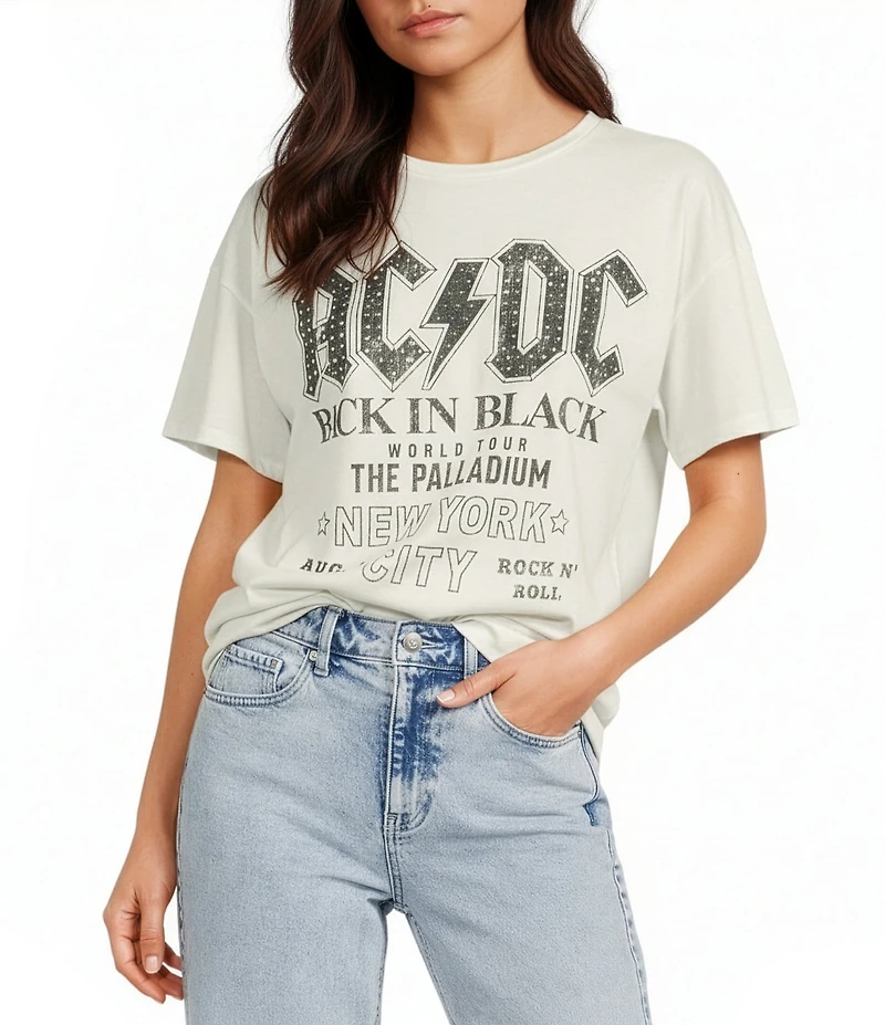 From GB, this t-shirt features: Jersey fabrication Crew neckline Short sleeves ACDC screen printed graphic Pullover styling Cotton/polyester Machine wash/tumble dry Imported.