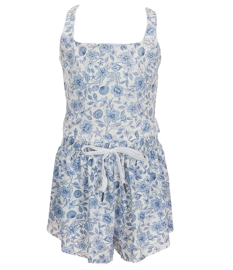 GB Big Girls Active Seashells In Bloom Print Square Neck Sleeveless Flippy Romper