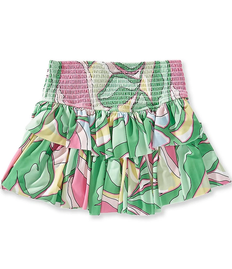 From GB Girls, this skort features: Knit printed fabrication Smocked waistband Tiered silhouette Fully lined shorts Pull-on styling Nylon/spandex Machine wash/tumble dry Imported.