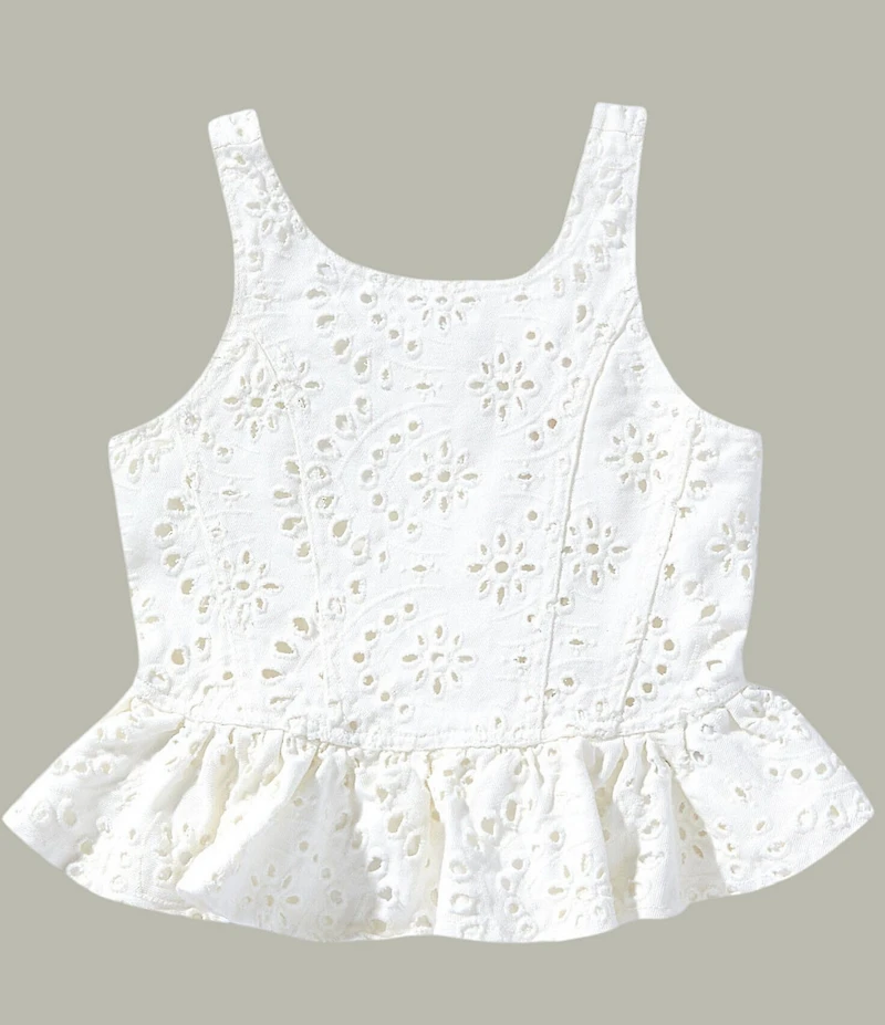 GB Big Girls Sleeveless Cotton Babydoll Eyelet Peplum Top