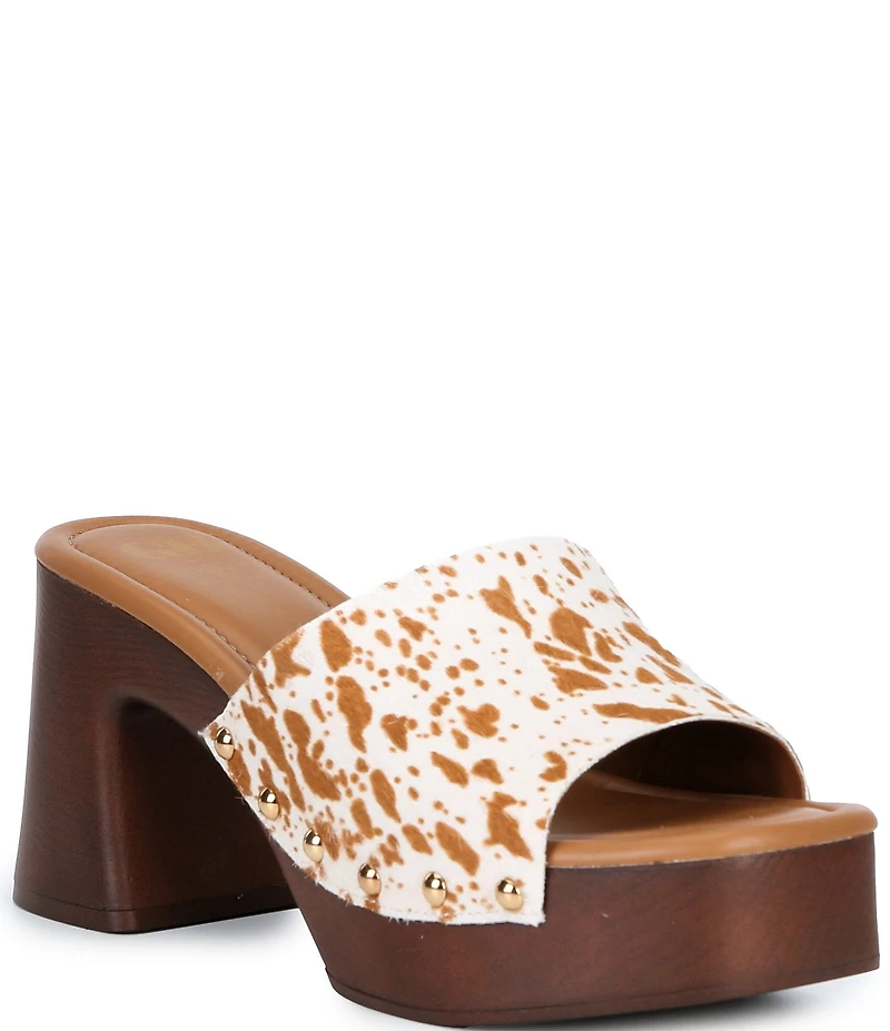GB Buck-Aroo Speckled Cow Print Haircalf Wood Platform Sandals