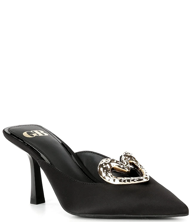 GB Heart-Eyes Satin Heart Ornament Dress Mules