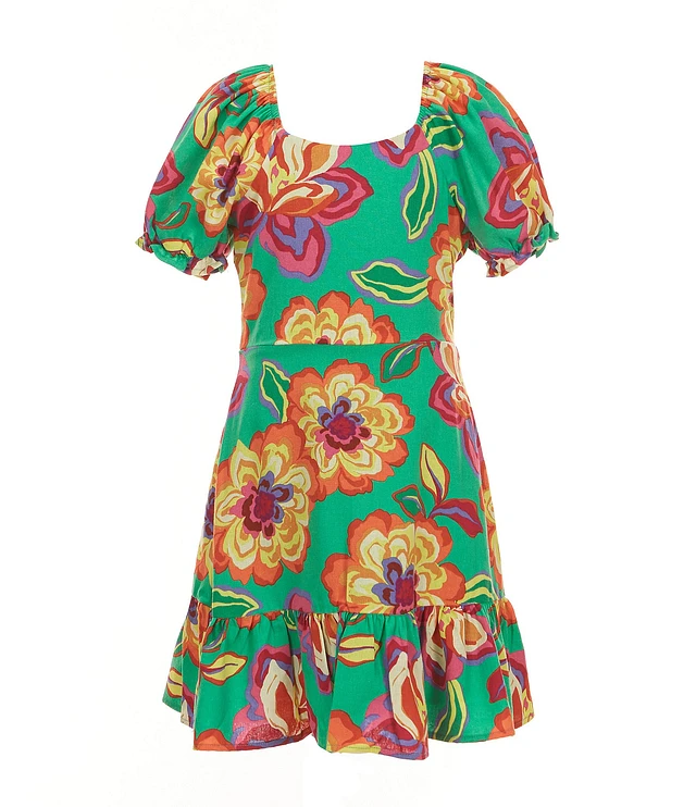 GB Little Girls Floral Print Puff Sleeve Tiered Dress