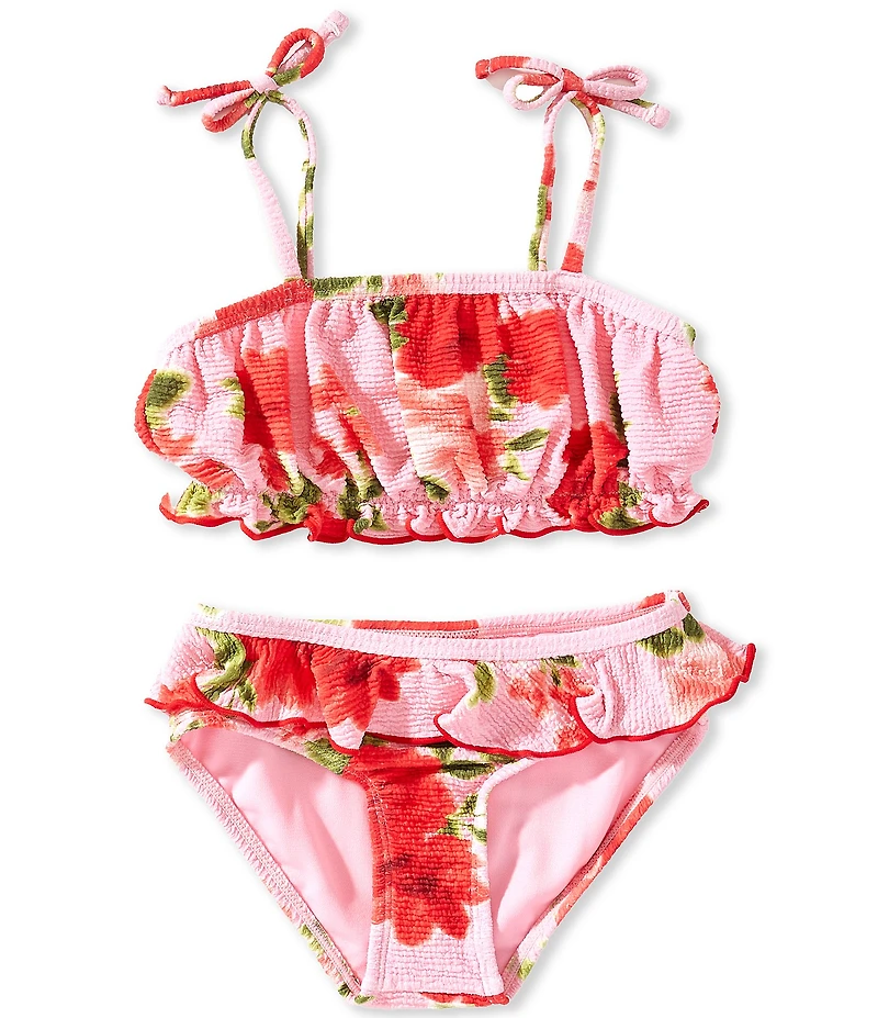 GB Little Girls Floral Print Shirred Bandeau Two Piece Swimsuit