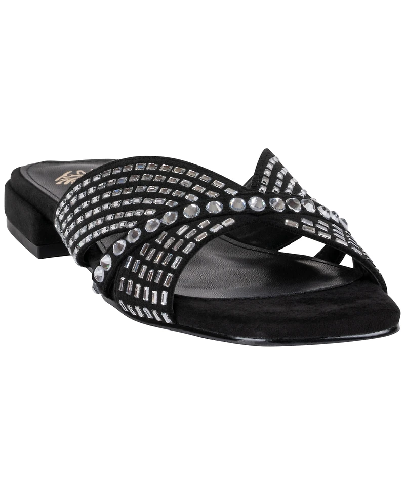 Gc Shoes Women's Elara Rhinestone Crisscross Flat Sandals
