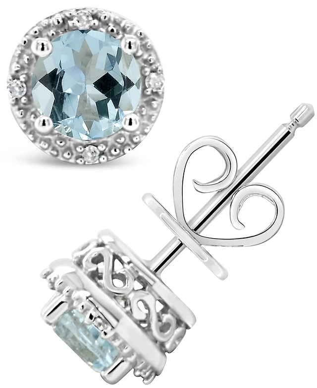 Aquamarine (3/4 ct. t.w.) and Diamond Accent Stud Earrings in Sterling Silver
