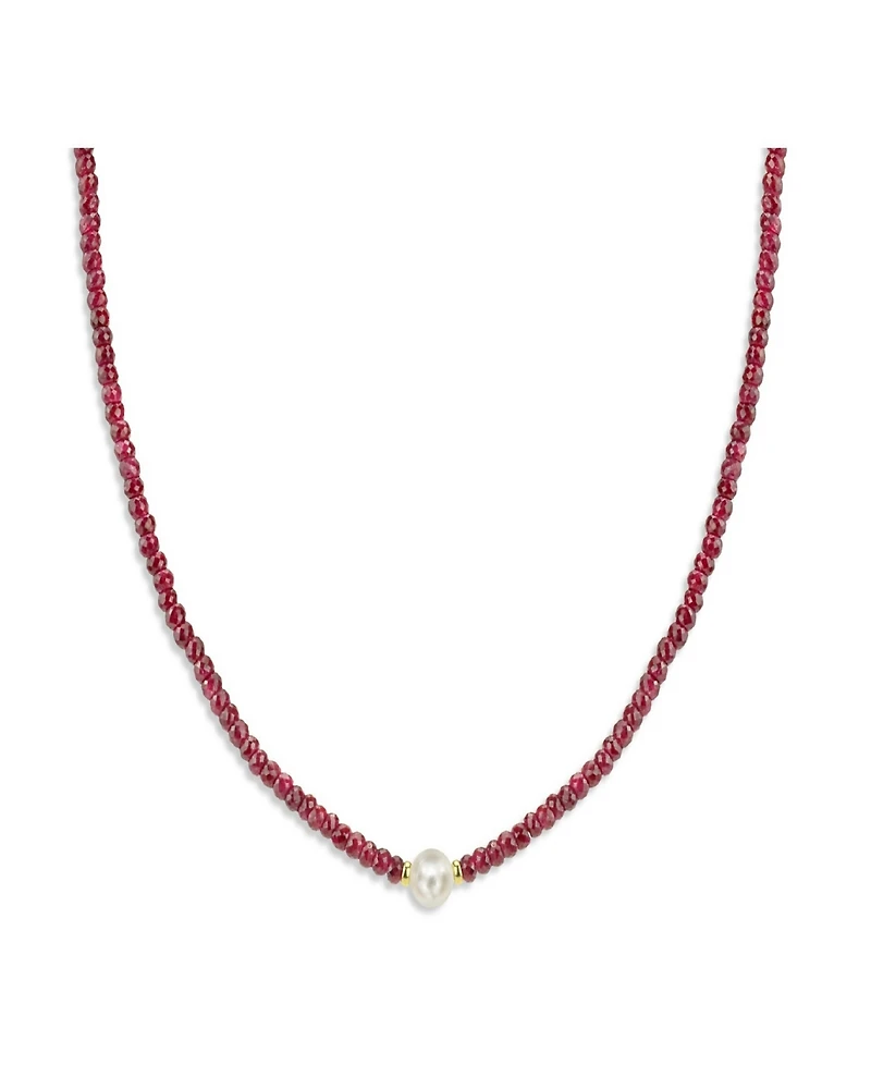 Gemstone and Cultured Pearl (9-10 mm) Strand Necklace 14k Yellow Gold (Available Ruby (80-1/2 ct. t.w), Sapphire t.w.), Emerald