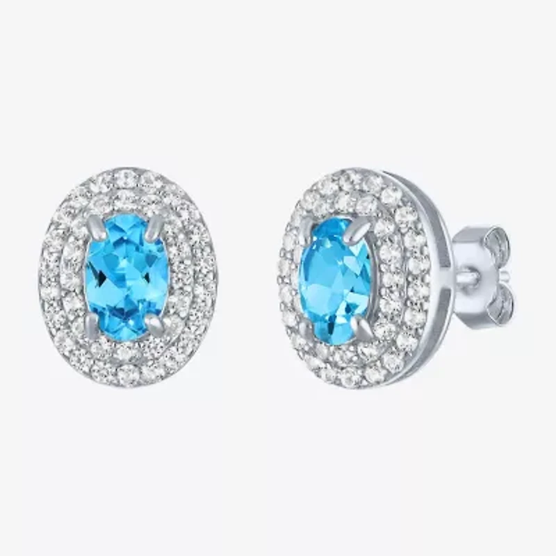 Gemstone & Lab-Created White Sapphire Sterling Silver Oval Double Halo Stud Earrings in Franklin, TN