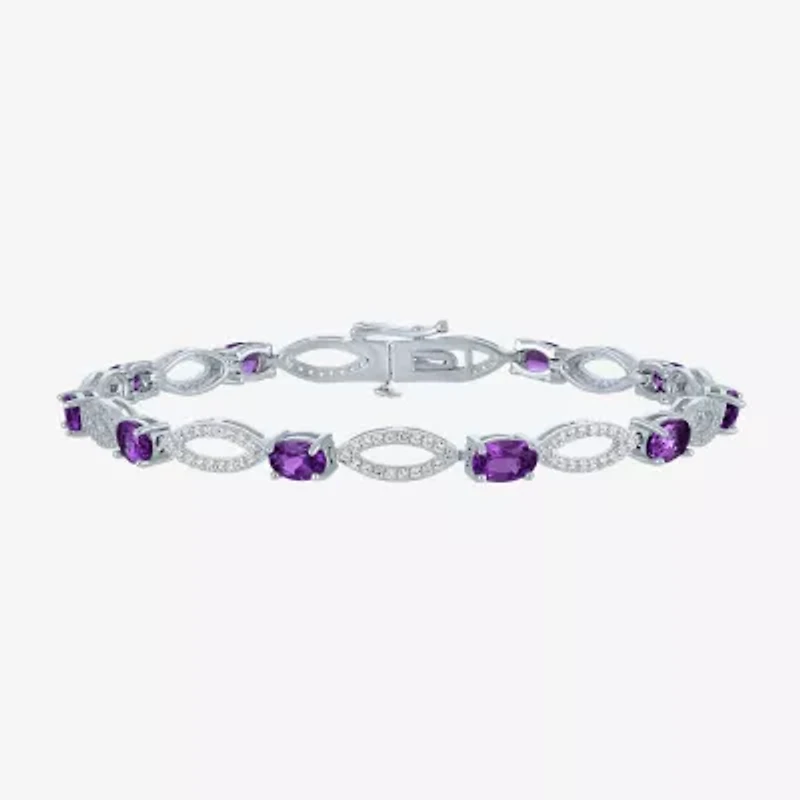 Gemstone Sterling Silver Oval Tennis Bracelet