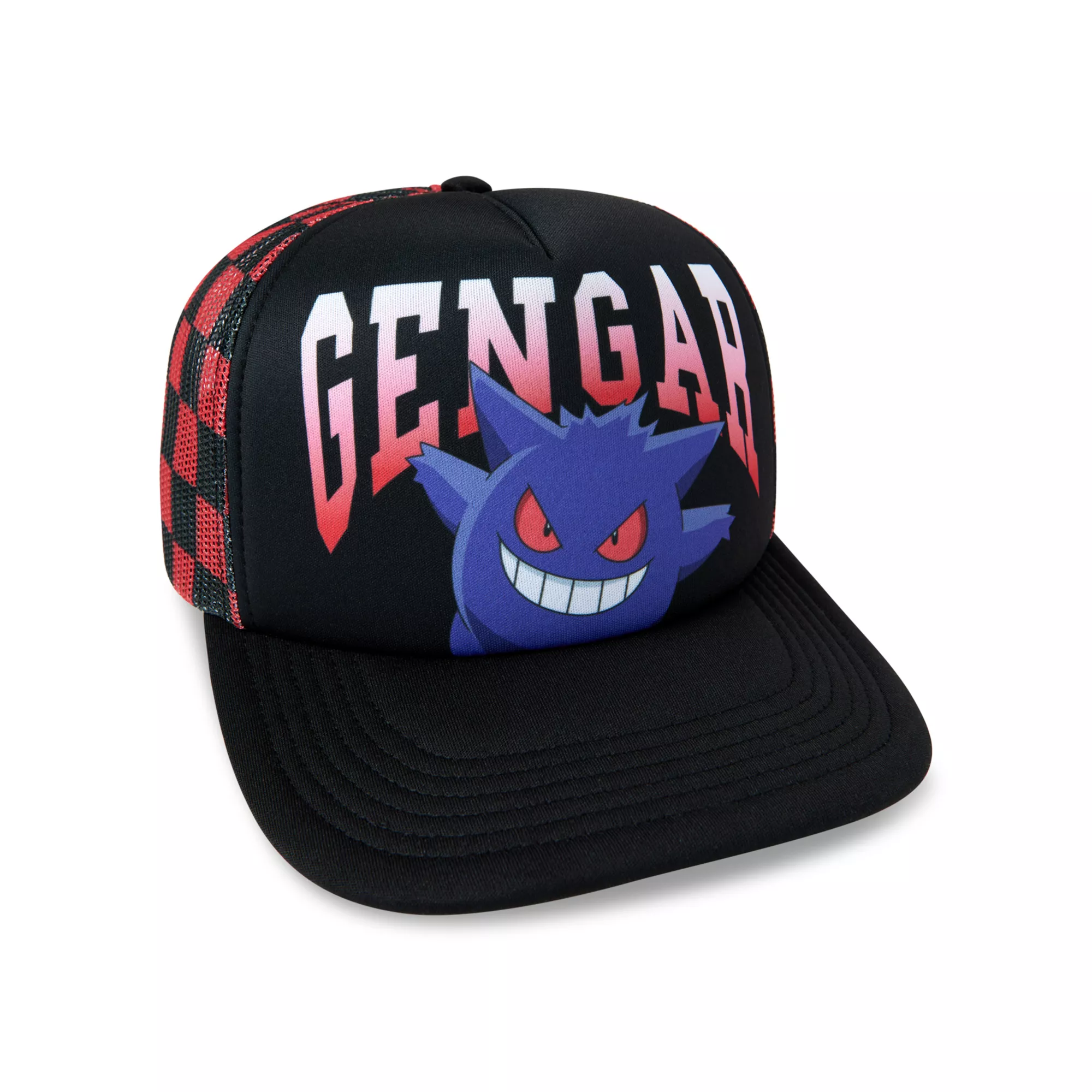 Step into the shadows with this officially licensed Gengar Black and Red Checkered Trucker Hat from Pokémon. Embrace the dark side of style with Gengar's sinister charm!