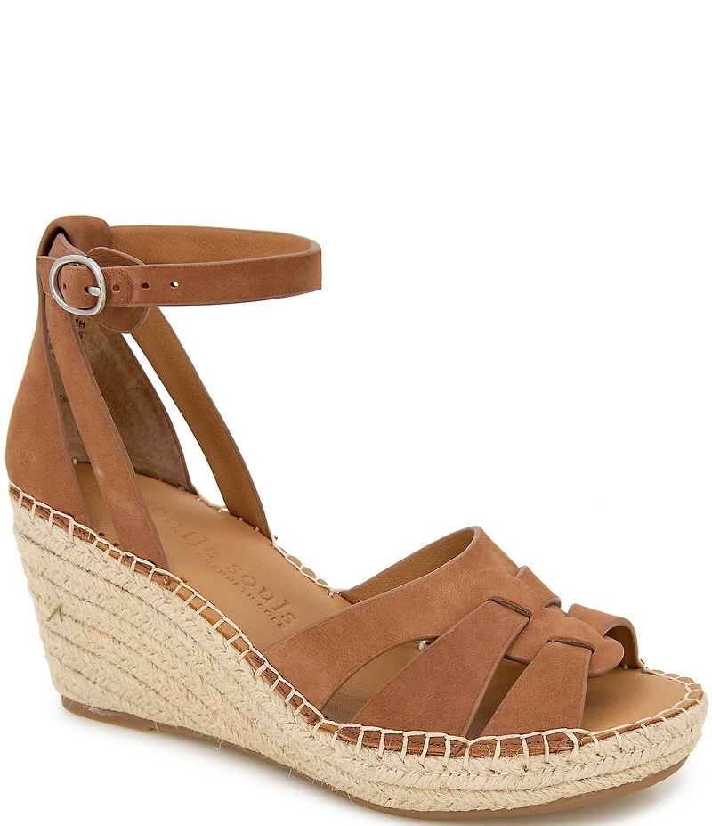 Gentle Souls Coolie Nubuck Suede Ankle Wrap Espadrille Wedge Sandals