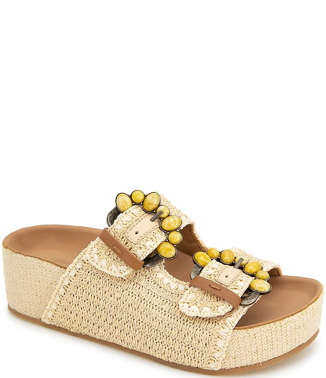 Gentle Souls Kendall Raffia Embellsihed Buckle Platform Sandals