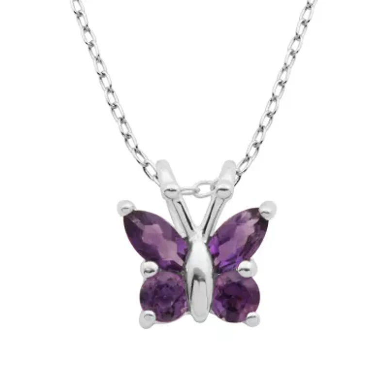 Choice of genuine amethyst, sky blue topaz or garnet butterfly pendant in sterling silver on a 18" chain. Spring ring clasp Polished finish Imported Product Specifications Chain Length: 18" Material & Care Metal, Sterling silver Clean with a soft cloth.