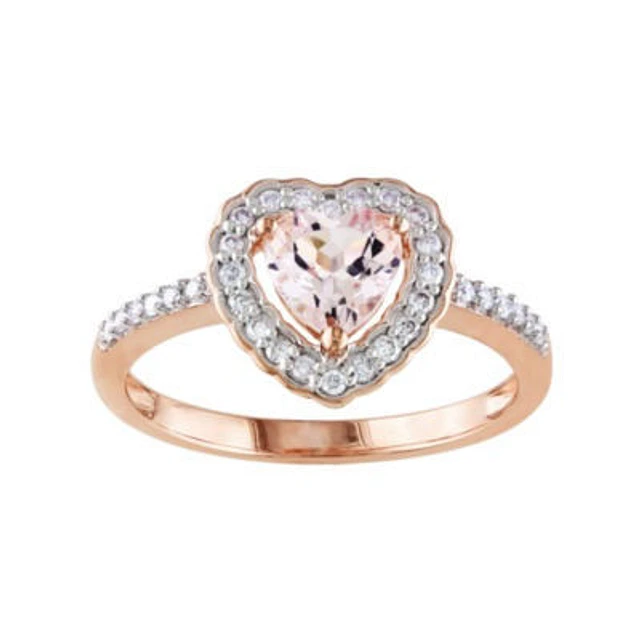 Morganite (1/2 ct. t.w.) and Diamond (1/20 Halo Heart Ring 10k Rose Gold