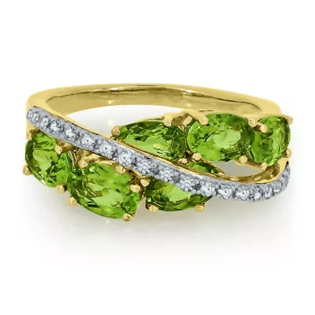 Genuine Peridot And Lab Created White Sapphire 14K Gold Over Silver Ring