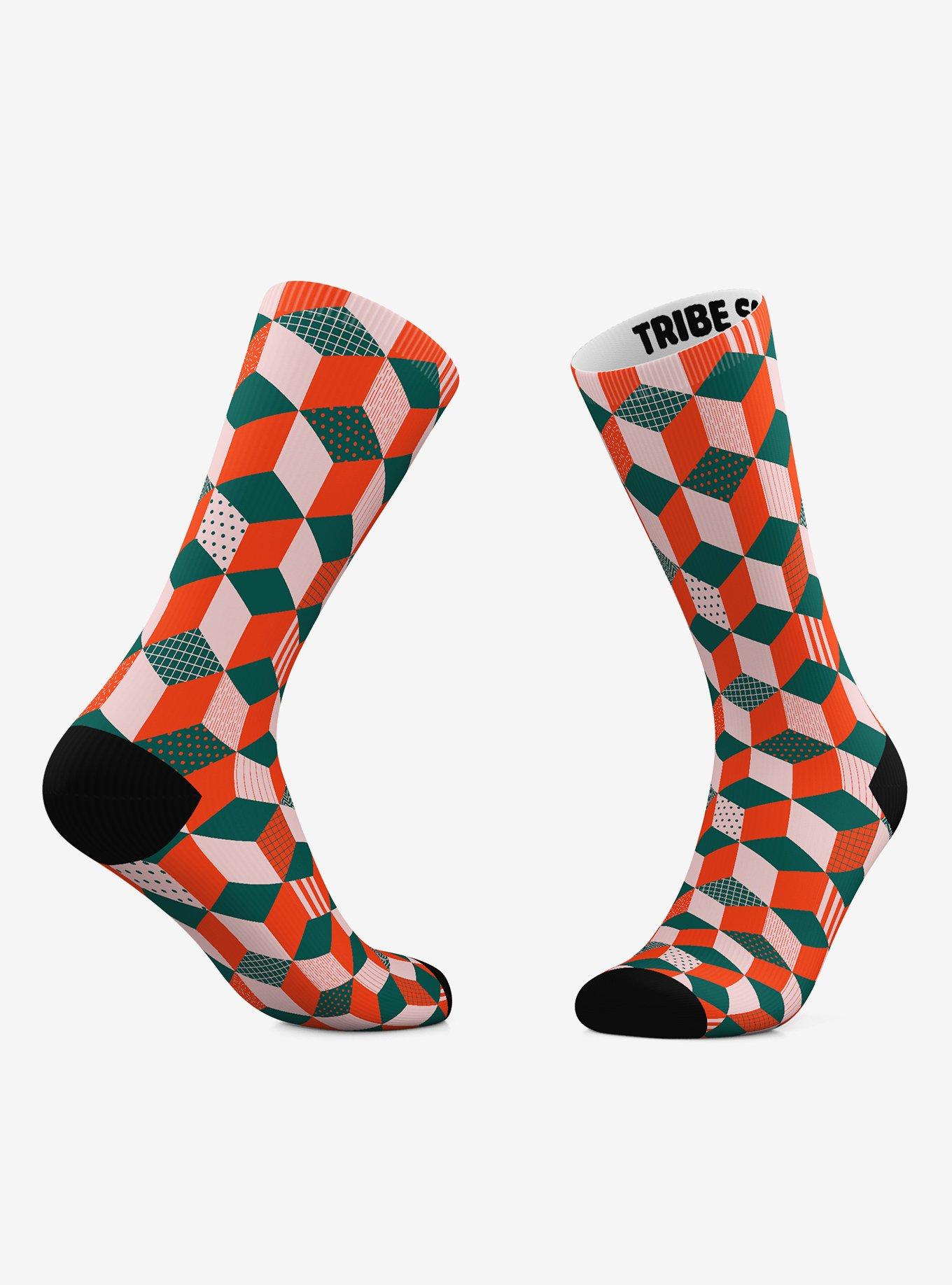 Geometric Holiday Socks And Geometric Yellow Stairway Crew Socks 2 Pair