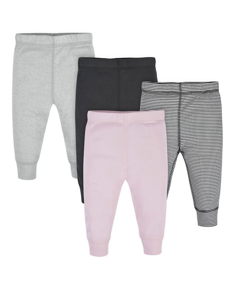 Time to get creative with this 4-pack of baby girls' active pants from Gerber! These wardrobe staples feature easy-to-match colors that pair perfectly with her favorite bodysuits or shirts. Made with 100% cotton rib, these pants support an active lifestyle. They're comfy and breathable, allowing her to move through the day feeling her best. A fabric-wrapped elastic waistband feels gentle on the skin while keeping the pants secure. The easy-on-and-off design makes the morning dressing routine simple. Easy care fabric makes laundry days less daunting for busy moms!