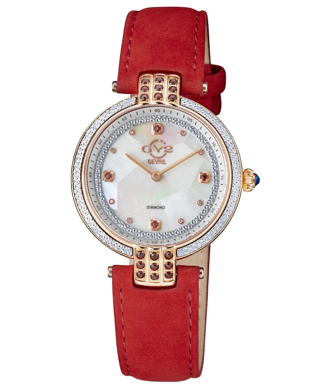 GV2 by Gevril Women's Florence Swiss Quartz Diamond Accents Red Handmade Italian Leather Strap Watch 36mm