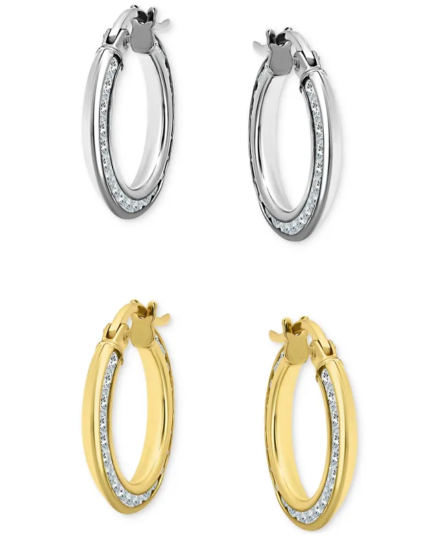 Giani Bernini 2-Pc. Set Cubic Zirconia Small Hoop Earrings in Sterling Silver & 18k Gold-Plate, 0.78", Created for Macy's