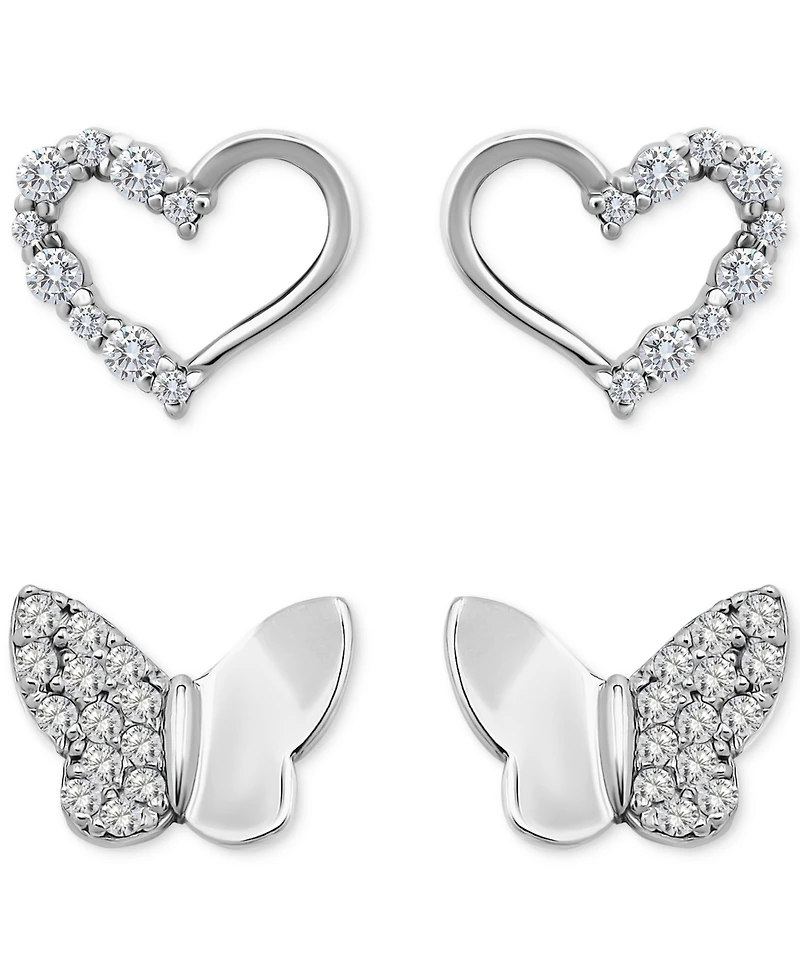 Giani Bernini Cubic Zirconia Heart & Butterfly 2-Pc. Set Stud Earrings (1 ct. t.w.) in 18k Gold over Sterling Silver, Exclusively at Macy's
