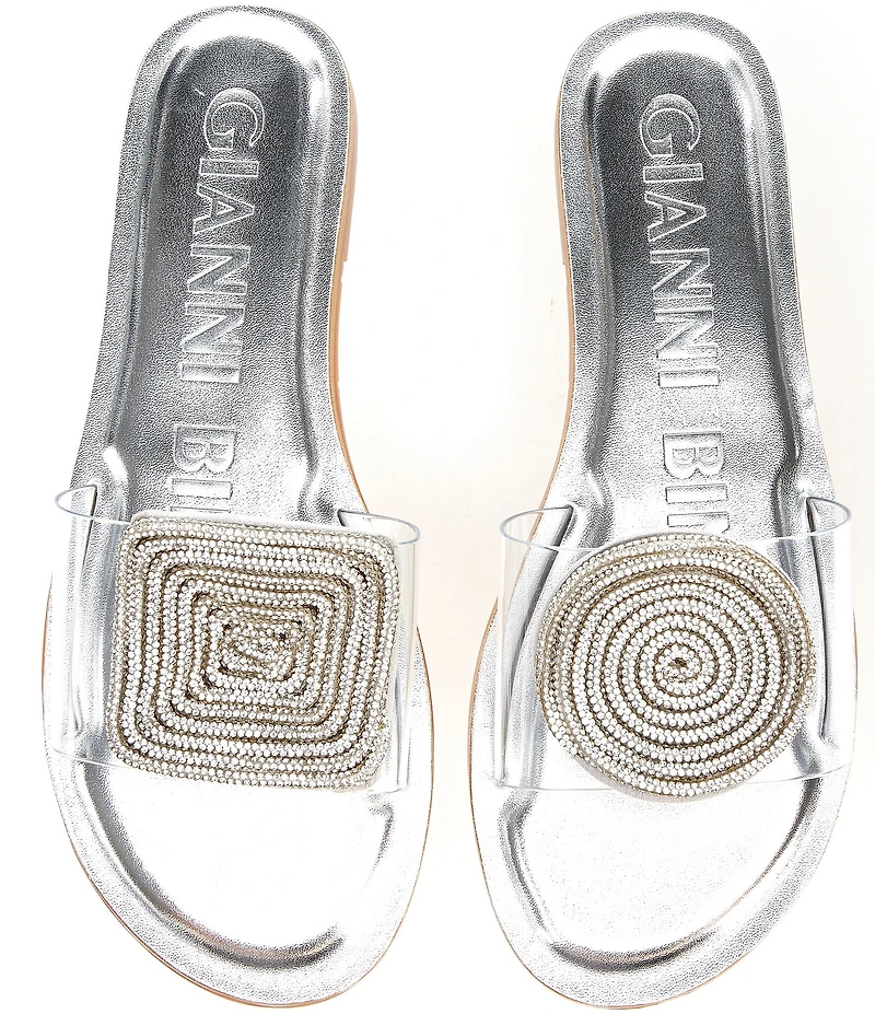 Gianni Bini Jaxx Clear Mismatched Rhinestone Ornament Flat Slide Sandals