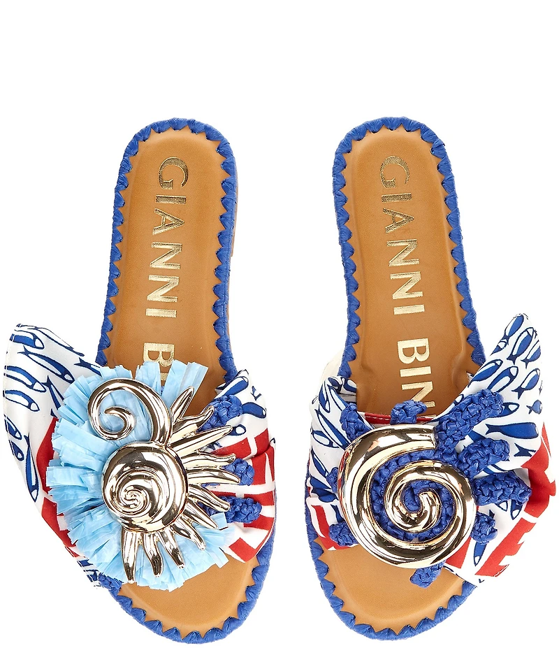 Gianni Bini Jillian Printed Mismatched Shell Ornament Slide Sandals